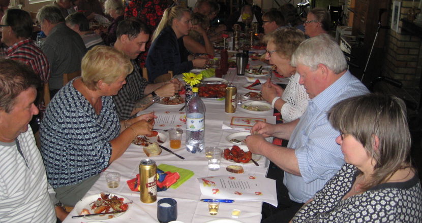 Glada vänners årliga kräftskiva i DHRs sommarhem Lilllsjöstrand. I år köpte vi in Hjälmarkräftor som smakade ypperligt. Även paj och sallad fick avsmakas med en liten nubbe till. Innan kaffet så blev det musik och dans till Frykmans med Tinas orkester.