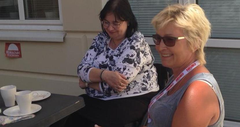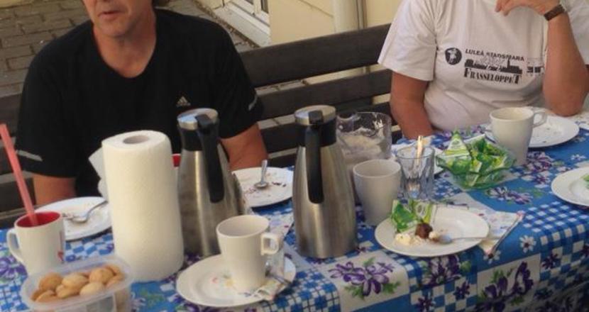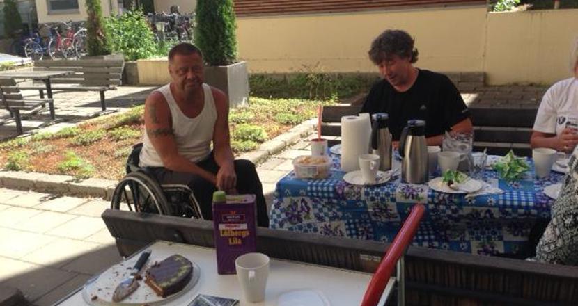 En solig sista caféträff för våren på vår härliga innergård.