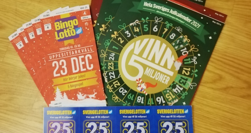 Vi har ett antal av Bingolottos julkalendar, några av Binglottos uppesittarlotter samt Sverigelotter.