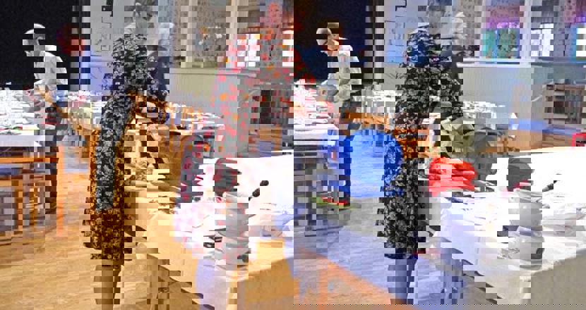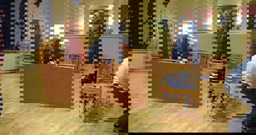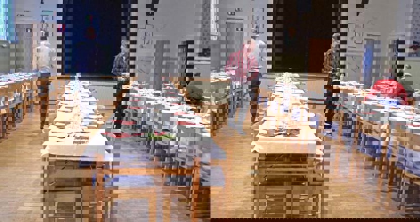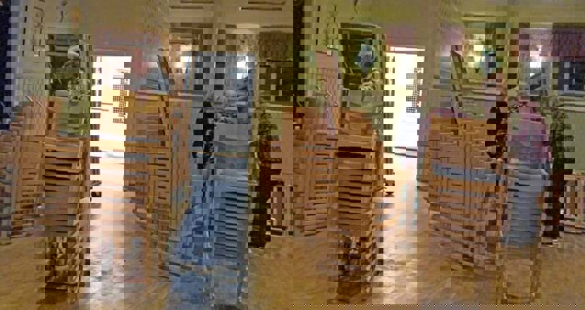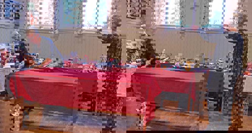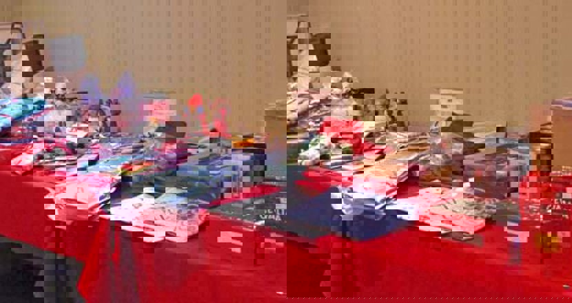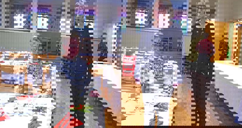 När alla bord och stolar var framme var det dags för dukning, nu åkte dukar och porslin fram. Som vanligt dukades det också upp ett bord med många fina vinster.