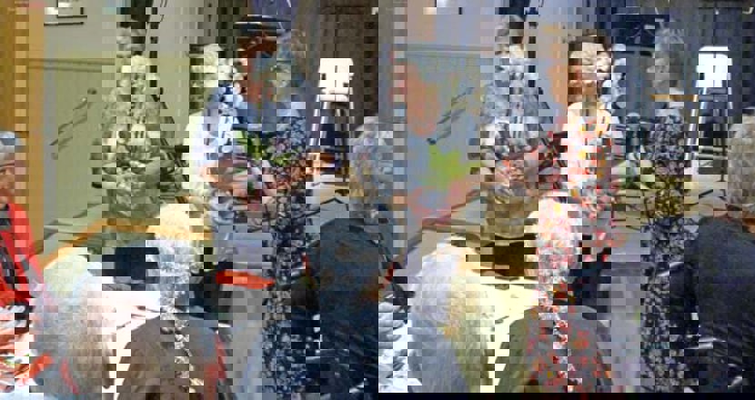 Eva avtackade kökspersonalen, de var lika fantastiska som vanligt. Naturligtvis fick de blommor och applåder. Eva passade även på att överlämna blommor som ett litet tack till de som skött köket på Örbygården under våra aktiviteter under året.