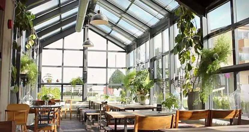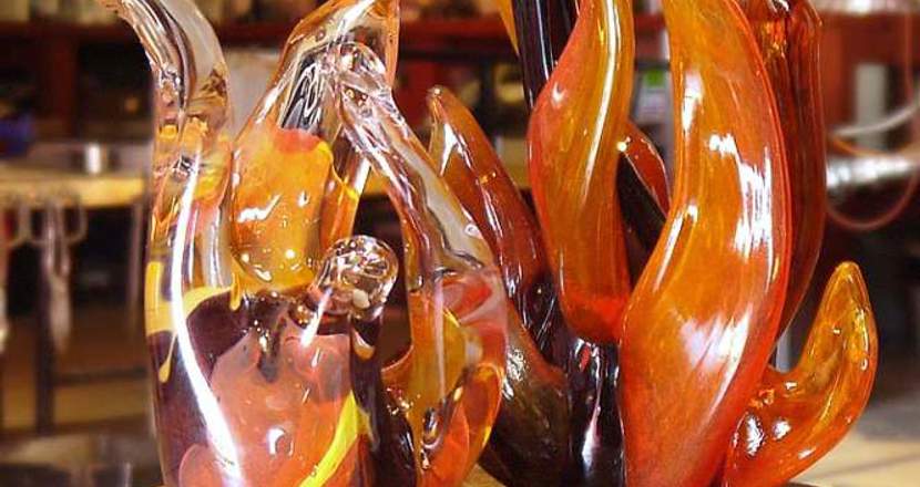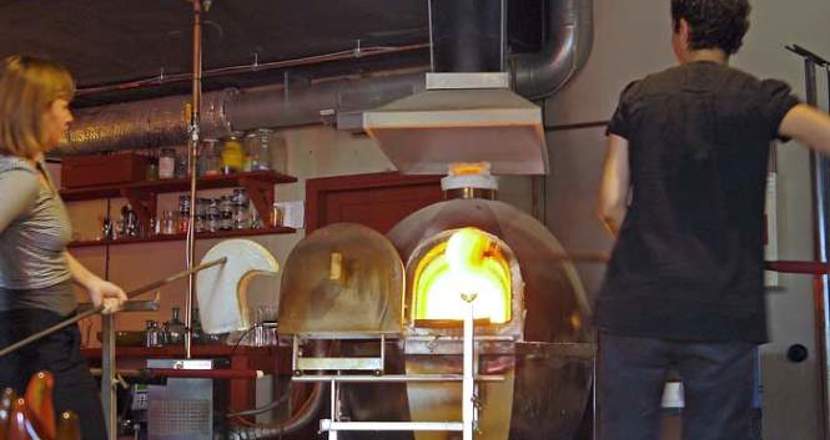 Glasets hus har en fin byggnad, med kafé, utställningshall för historiskt glas, studiohytta, utställningshall för tillfälliga utställningar.