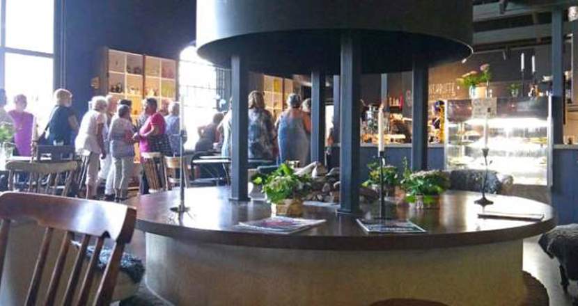 Resan gick sedan vidare till Borås textilmuseum med inriktning på mode, design, konst, industri och innovativ textil. Vår guide Anette Banås som f ö var med på hela resan, berättade om historiken kring textilmuseet och all verksamhet som pågår där. Vi fick också av museets egen guide Karin en inblick i hur textiltillverkningen fungerar i Bangladesh som ledde till diskussioner om bl.a. barnarbete. Även här i kvarteret Simonsland blev vi imponerade av hur mycket där fanns som intresserade oss alla.