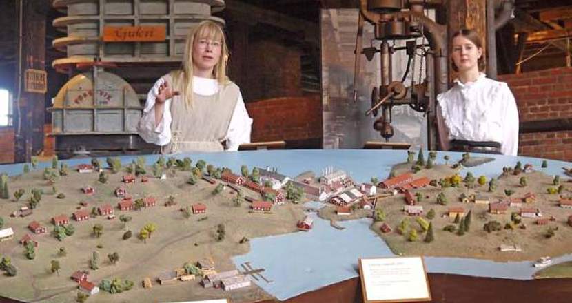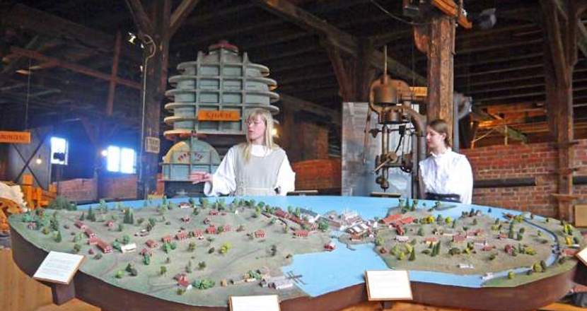 Luften till kalorifären gick i en kanal längs tubens utsida och uppvärmdes därigenom av hetluften. Varmluftsanläggningen var först inrymd i fabriken men flyttades vid återuppbyggnaden efter branden 1876 till en säkrare plats. Detta är den enda kalorifären som finns kvar.