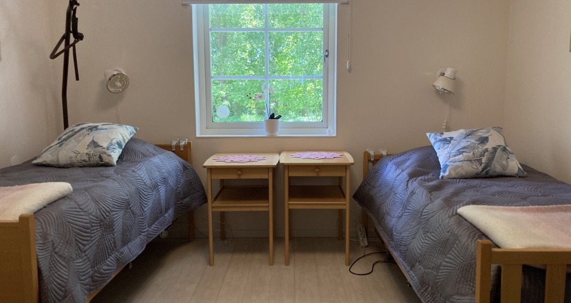 - har 3 dubbelrum för uthyrning utifrån vandrarhemsstandard. Sängarna är ställbara.