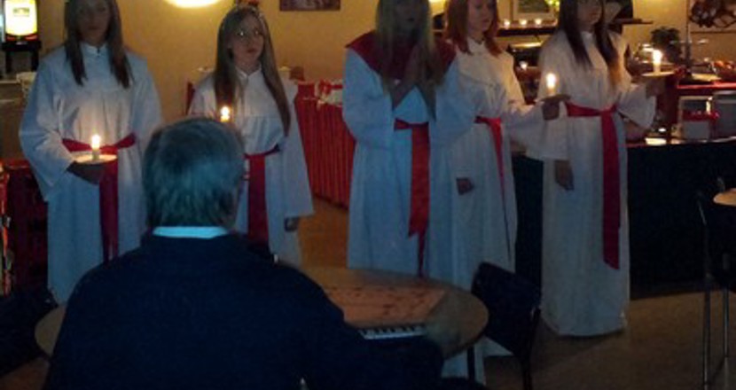 Vi njöt av härlig gemenskap tillsamman på Arken restaurang..Det bjöds på julgröt och skinksmörgåsar. Dessutom kom Skelleftebygdens luciatåg och sjöng för oss!