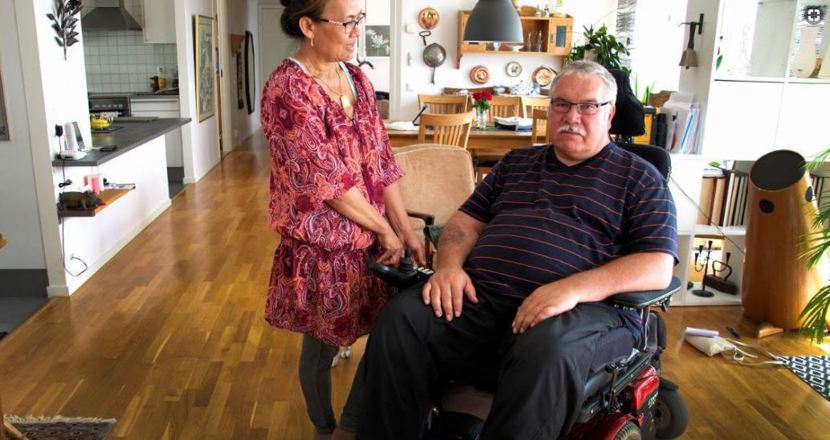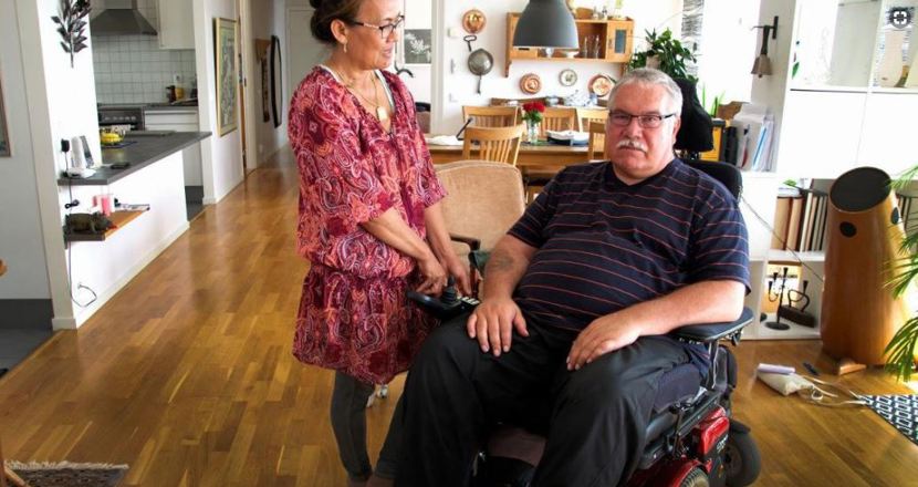 – Jag får gå och lägga mig om inte jag har elrullstolen. Jag kan inte stå på mina ben. Att sitta i en vanlig rullstol blir för jobbigt, där kan jag inte fälla ryggstödet till exempel, den använder jag bara en kort stund till badrummet på morgonen, säger han.