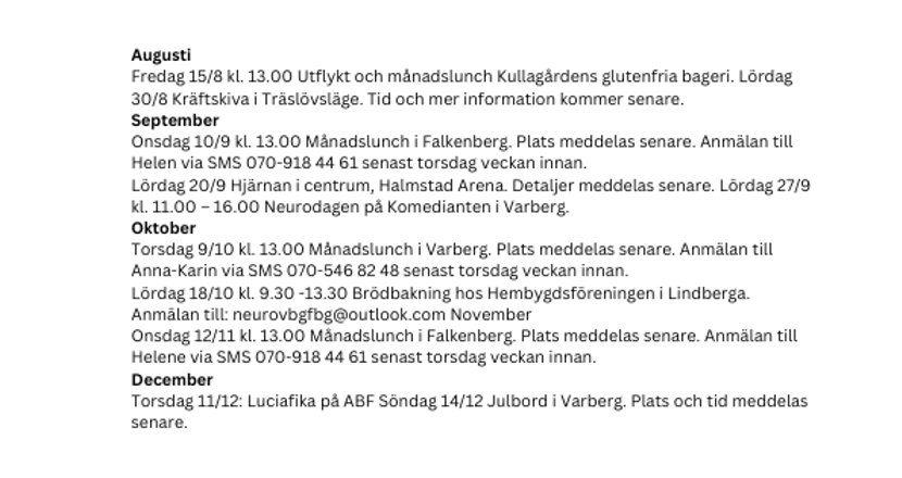 Det kan även komma lite aktiviteter med kort varsel.