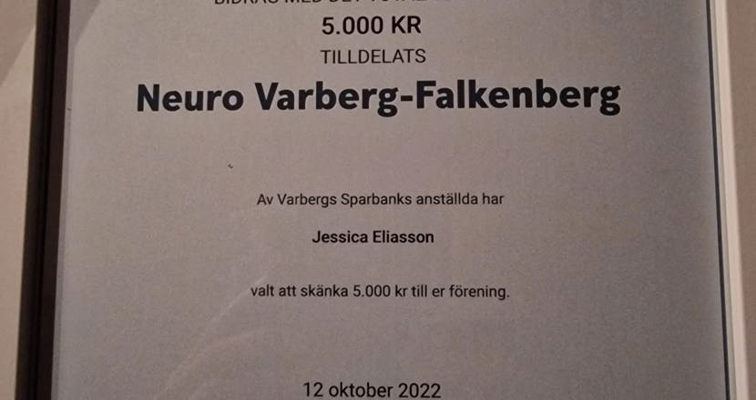 Den 12 oktober fick våran förening ett bidrag på 5000 från Varbergs Sparbank.